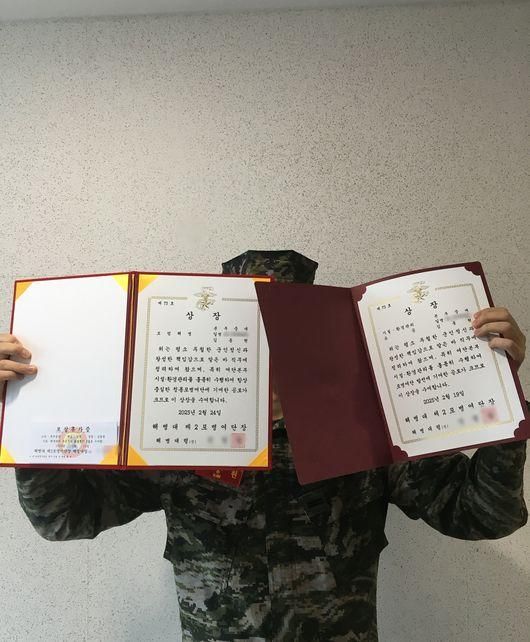 그리는 ‘모범 해병’ 상장과 함께 시설·환경관리 유공 상장을 받았다. 상장에는 ‘평소 투철한 군인정신과 왕성한 책임감으로 맡은 바 직무에 정려하여 왔으며, 특히 여단본부 시설·환경 관리를 훌륭히 수행하여 항성 충실한 청룡포병여단에 기여한 공로가 크므로 이 상장을 수여합니다’라고 적혀있다.