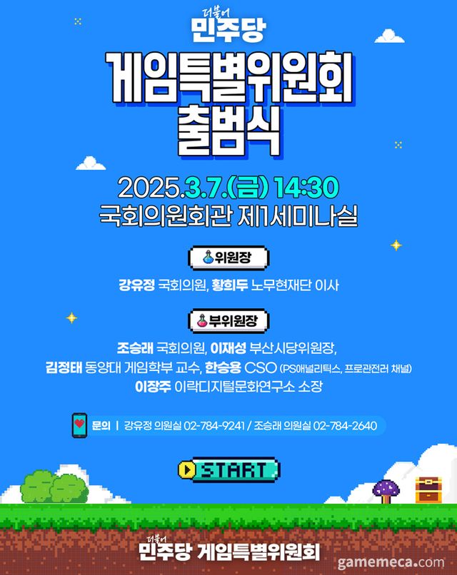 더불어민주당은 오는 3월 7일 오후 2시 30분에 국회의원회관 제 1세미나실에서 게임특별위원회 출범식을 개최한다.