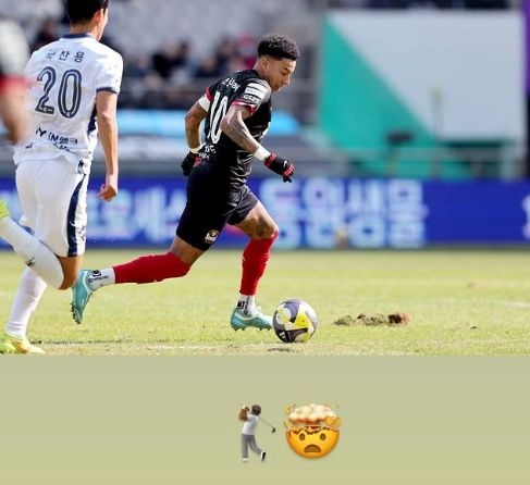 결국 린가드는 자신의 SNS로 서울월드컵경기장의 잔디 상태를 지적했다. 사진 속에서 린가드는 드리블을 하고 있는데, 린가드 바로 옆에 잔디가 파여 있는 모습을 확인할 수 있다.