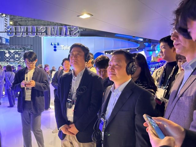 홍범식 LG유플러스 사장이 MWC25 현장에서 삼성전자 부스를 찾았다. 사진=강준혁 기자