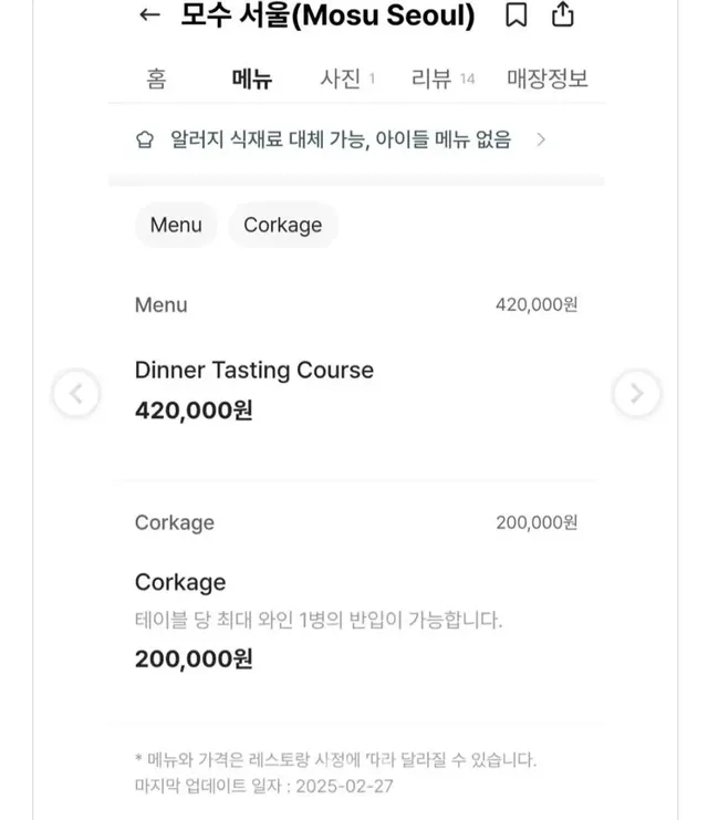 디너 420,000원 싸다...