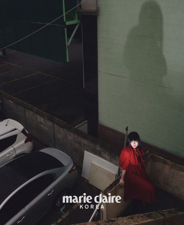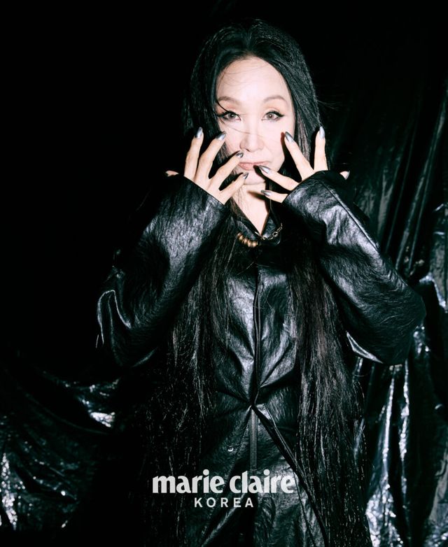 한영애 블랙 블라우스와 스커트 모두 Comme des Garçons, 부츠는 스타일리스트 소장품.