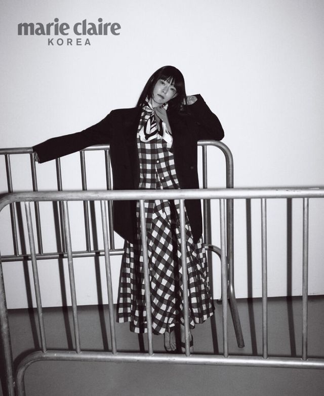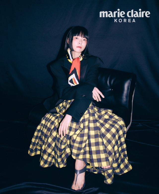 김윤아 재킷과 셔츠, 스커트 모두 McQueen, 부츠 4TRESS.