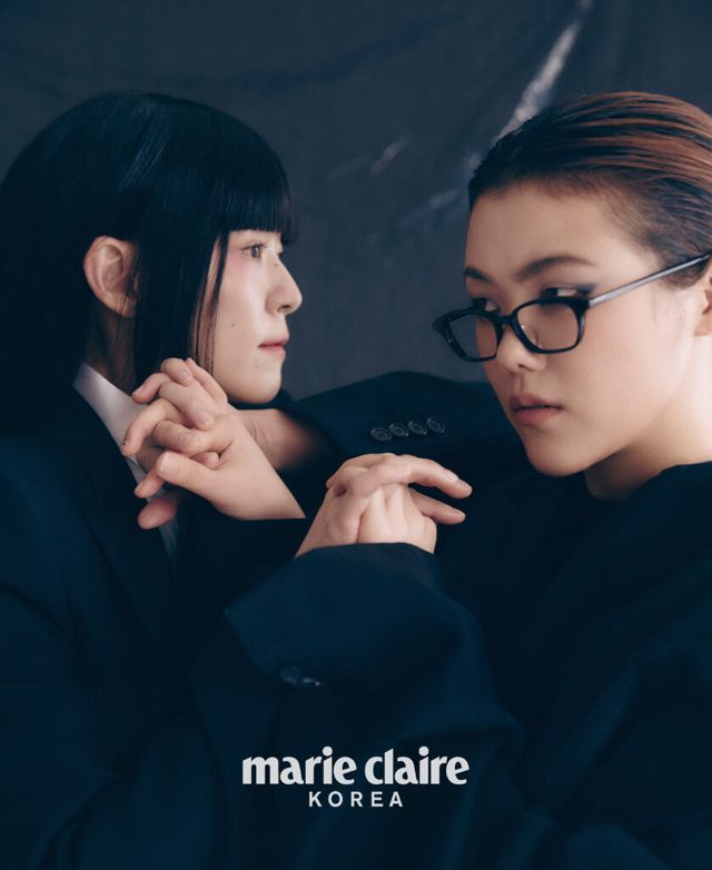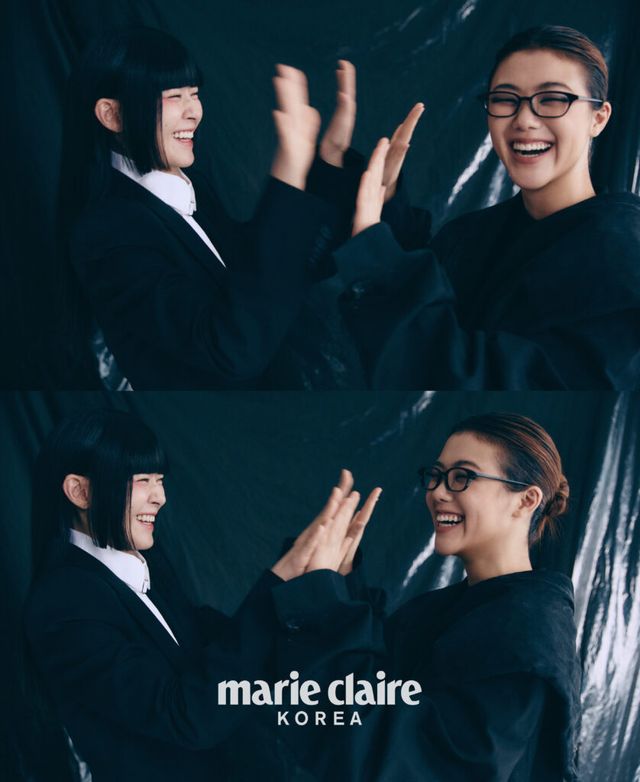 황소윤 블레이저와 티셔츠, 팬츠, 부츠 모두 Balenciaga, 안경 Hakusan.