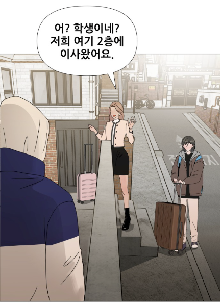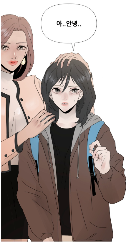 깜짝 놀라 돌아보니 오늘 이사 온 아린의 엄마가 편한 차림으로 내려왔습니다.