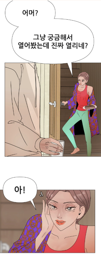 이후 아린의 엄마는 시도 때도 없이 그 문을 열고 1층으로 내려옵니다.