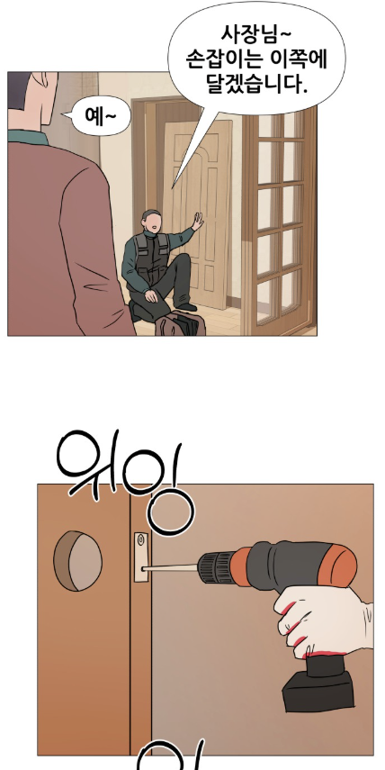 조용해진 뒤에야 주인공이 방 밖으로 나옵니다.