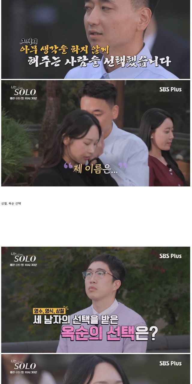 자기가 나름 관심을 가지고 더 적극적으로 들이댔던건 영철, 광수인데 둘 다 순자에게 뺐김