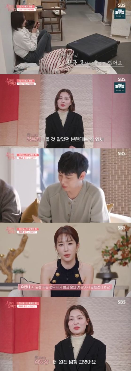 김윤정은 "엄청 꼬였다. 새벽 3시까지 잠을 못 잤던 것 같아. 어떡하지. 나는 무슨 마음이지? 몰래 이불 덮고 명상하고, 추측을 제가 명확하게 하지 못했다. 정리가 안 되어서 너무 힘들었다. 너무 멘붕이었다.