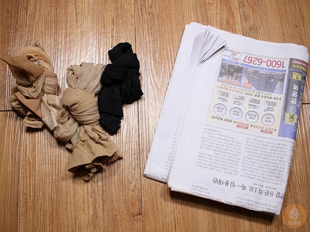 저는 신문지와 스타킹으로
