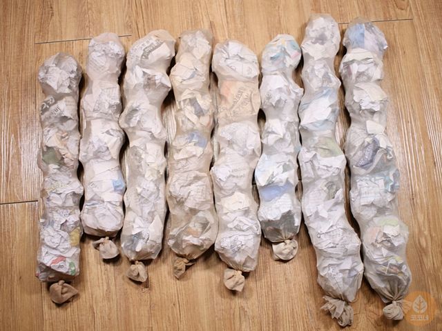 이건 발부분까지 신문지로 채워서