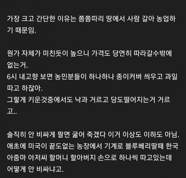 땅덩이 좁음 원가자체가 매우 높음 대규모 작물이 힘듬