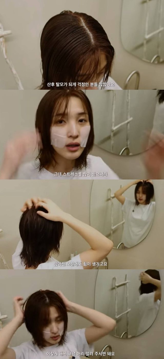 공개된 영상에서 율희는 탈모를 고백하며 "저처럼 아이 낳고 산후탈모 걱정이신 분들 많지 않냐"라고 이야기했다.