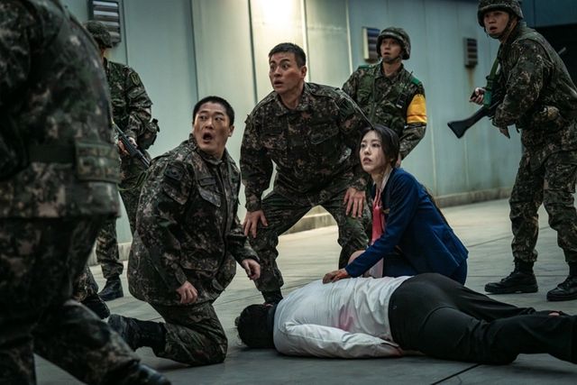 쿠팡플레이 시리즈 ‘뉴토피아’는 군인 재윤(박정민 분)과 곰신 영주(지수 분)가 좀비에 습격당한 서울 도심을 가로질러 서로에게 달려가는 이야기를 그린다.