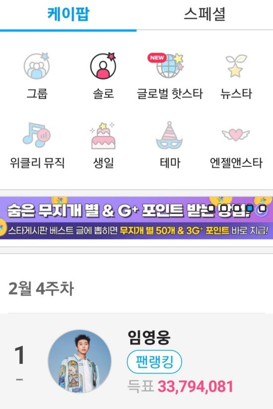 최근 '팬앤스타'에 따르면, 임영웅은 2월 4주 차 솔로가수 인기 랭킹 투표에서 1위에 등극했다.