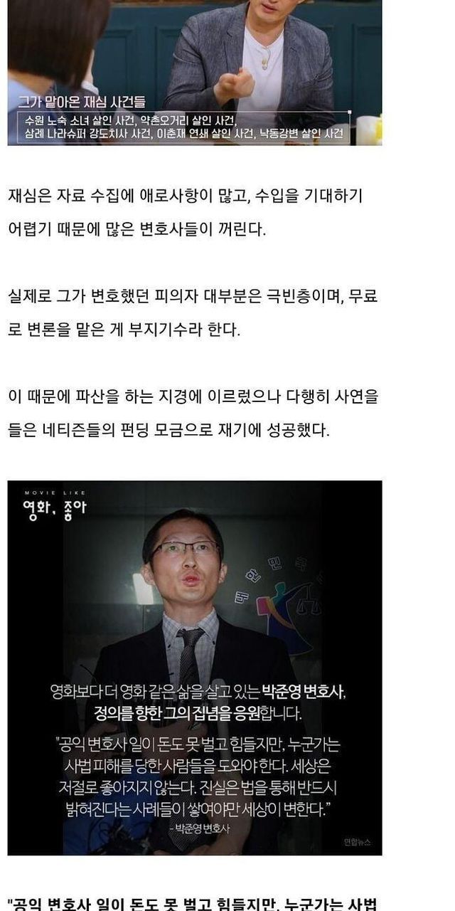 무죄 입증과 재심으로 억울한 사람들을 구명해 주신 참 변호사님인 박준영 변호사님