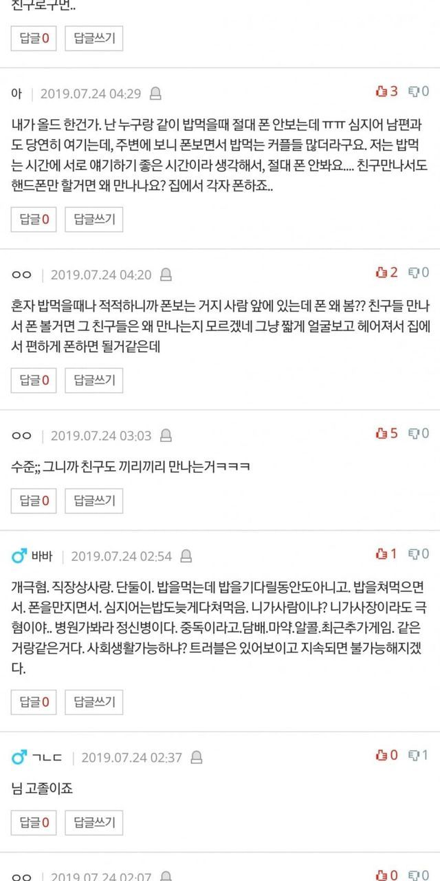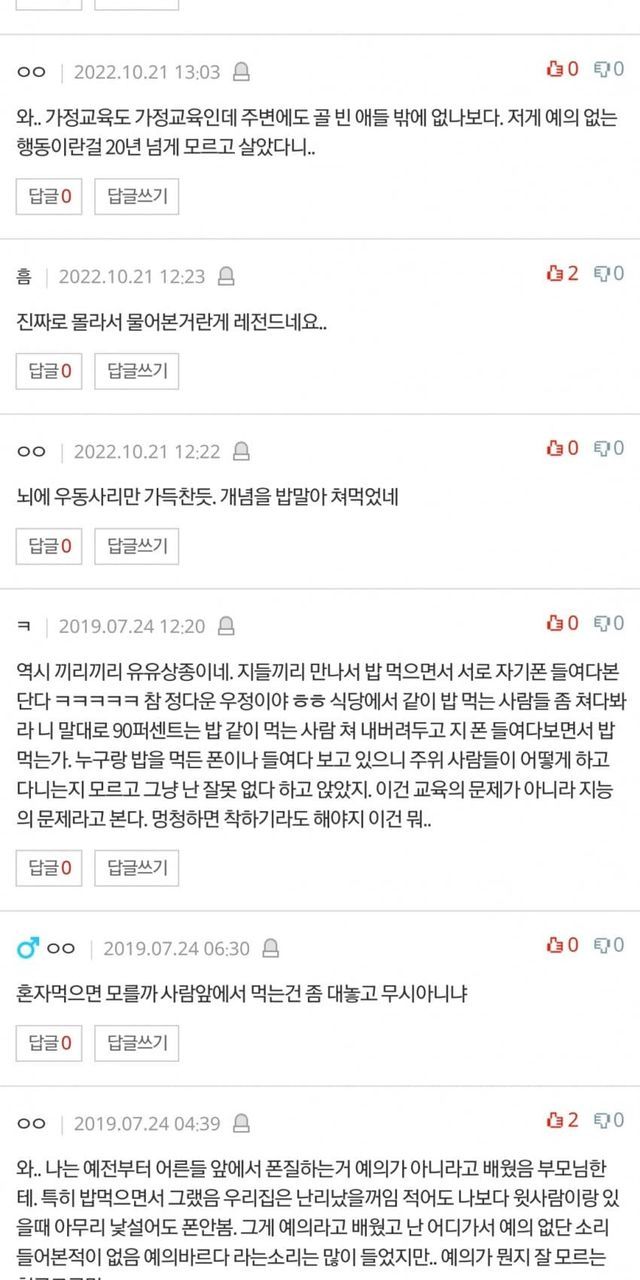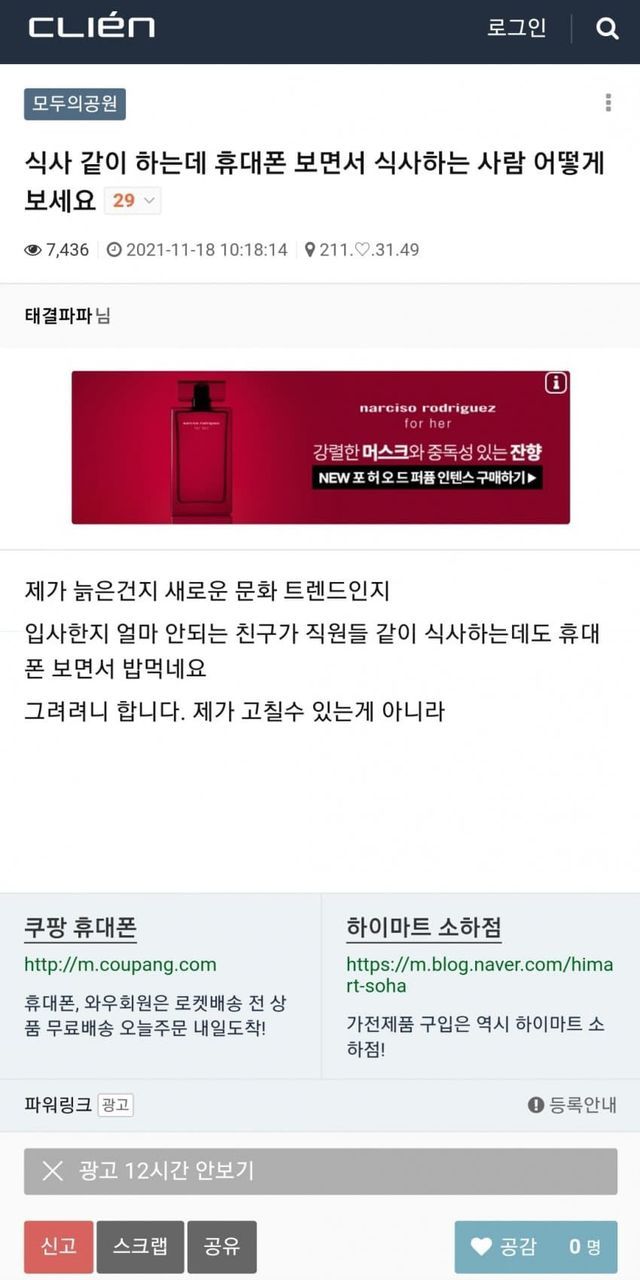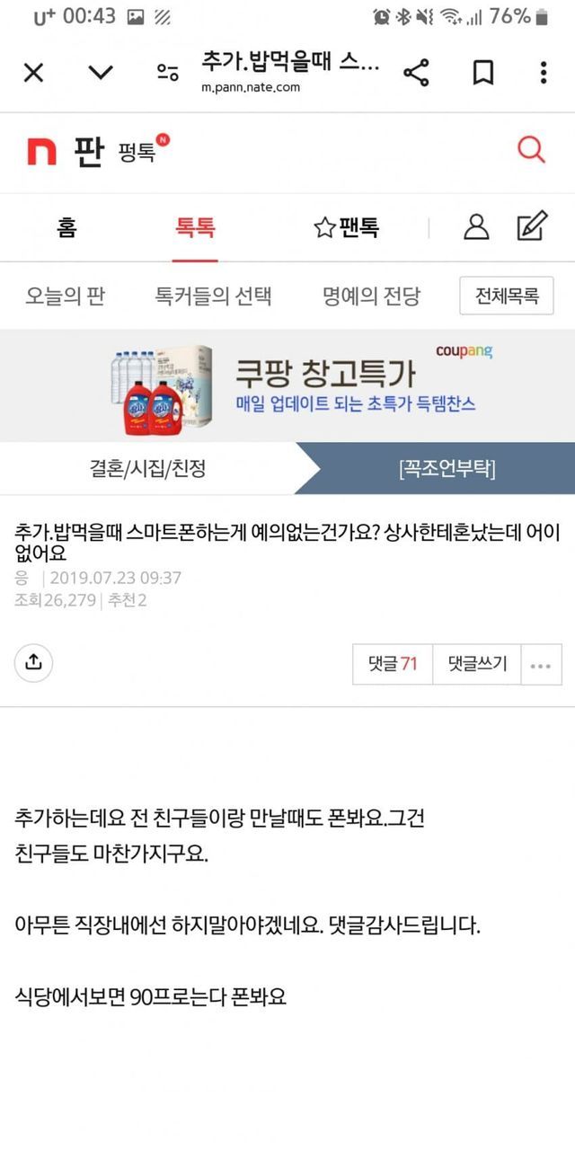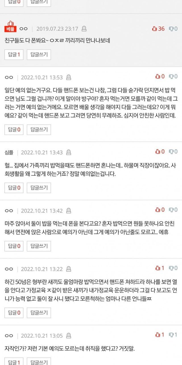 밥 먹으면서 폰 하는 것에 대하여(클리앙 vs 판)