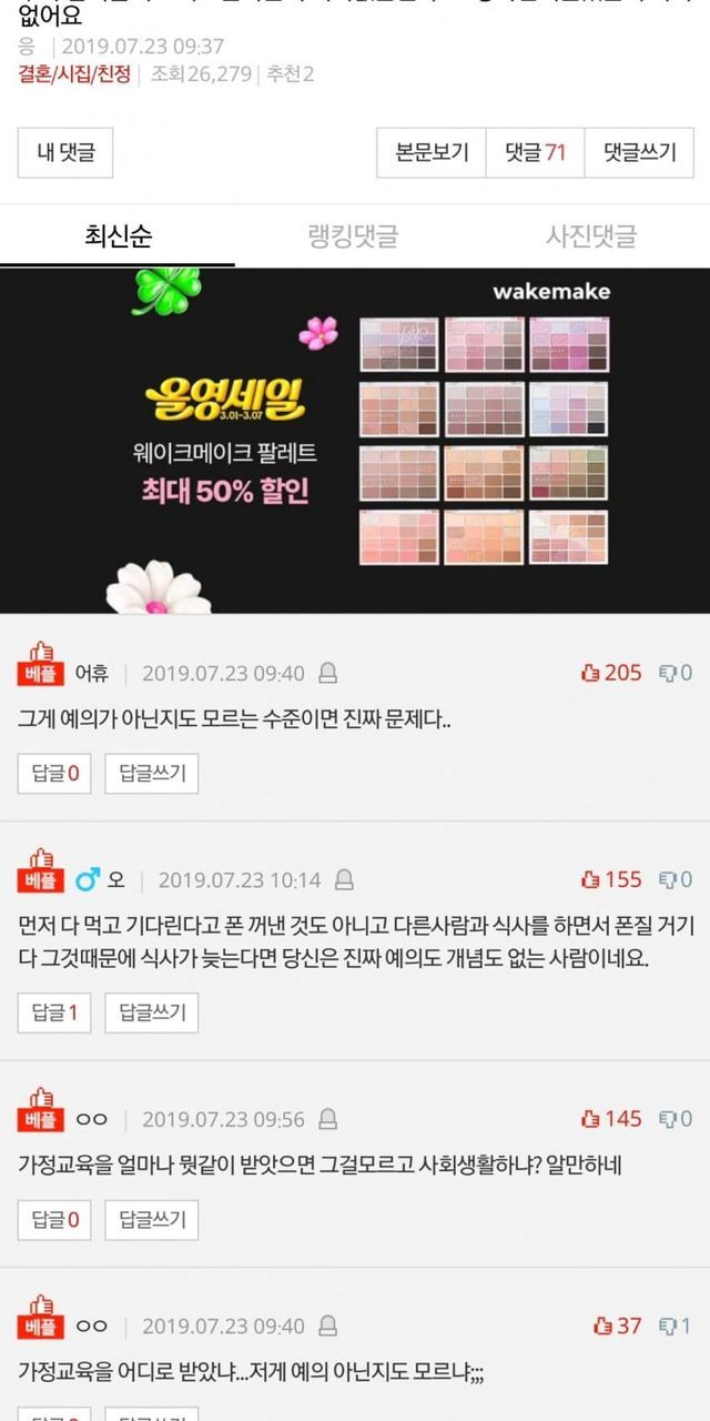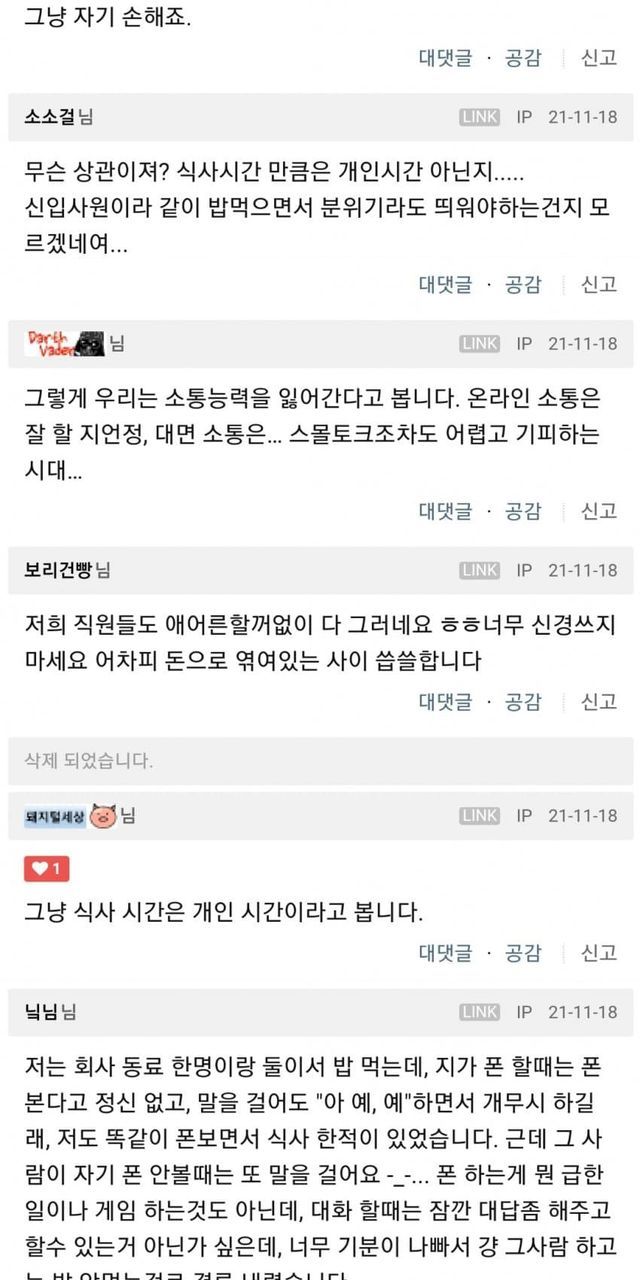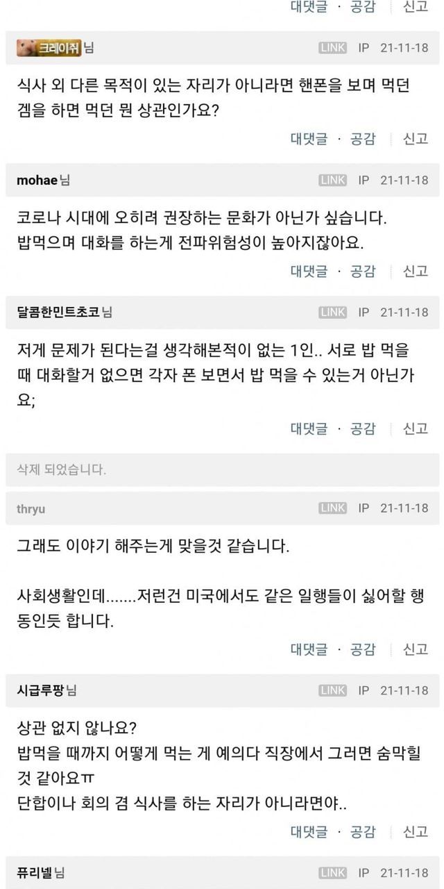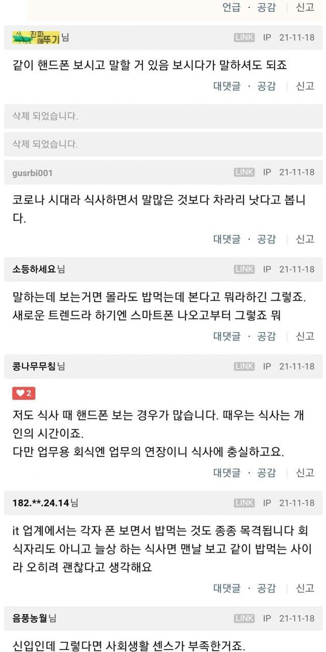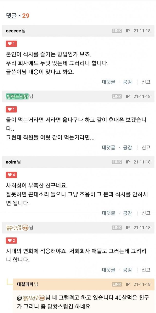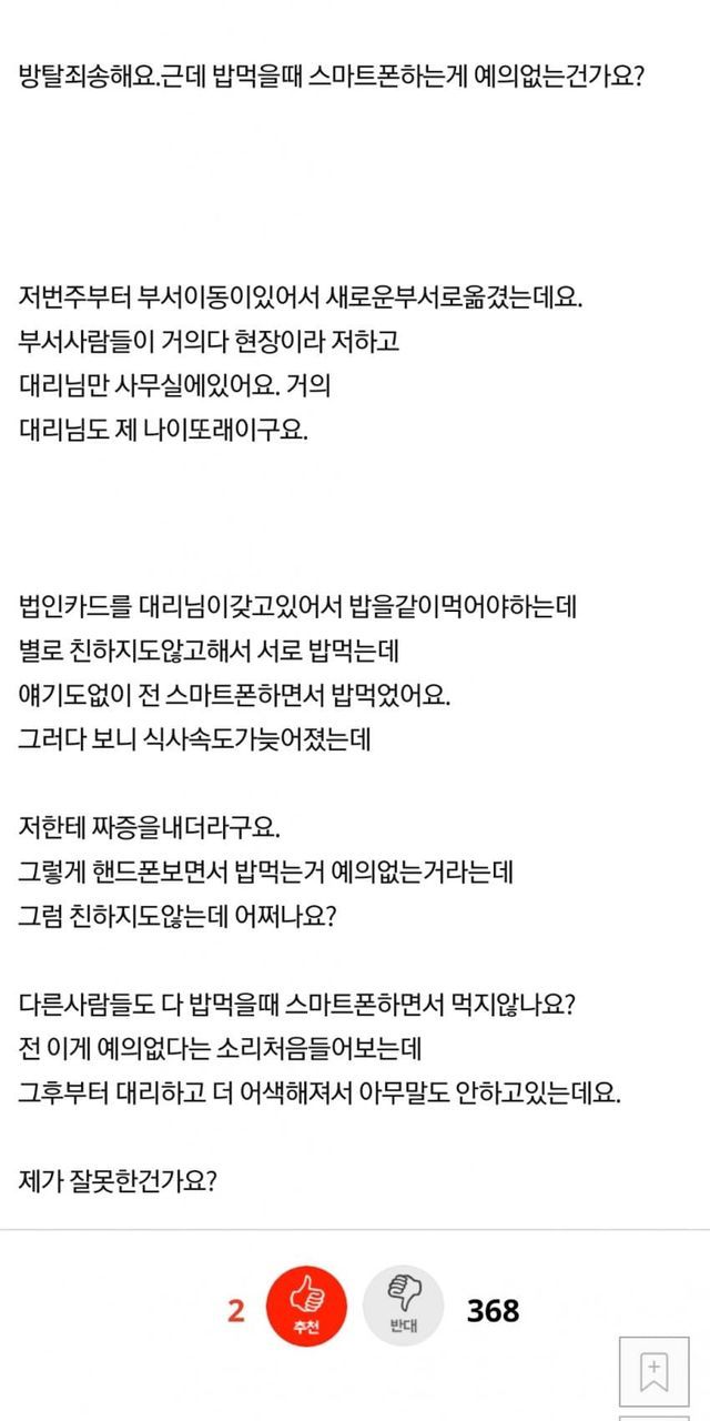 밥 먹으면서 폰 하는 것에 대하여(클리앙 vs 판)