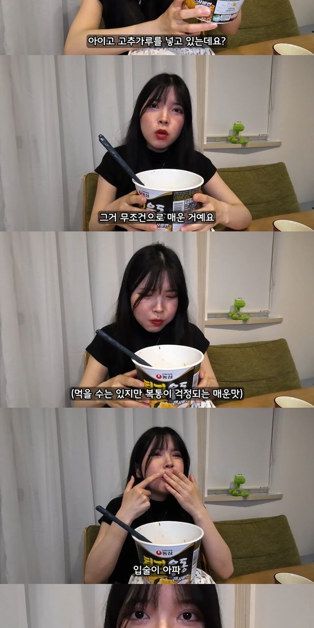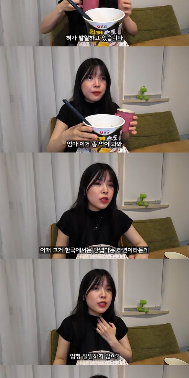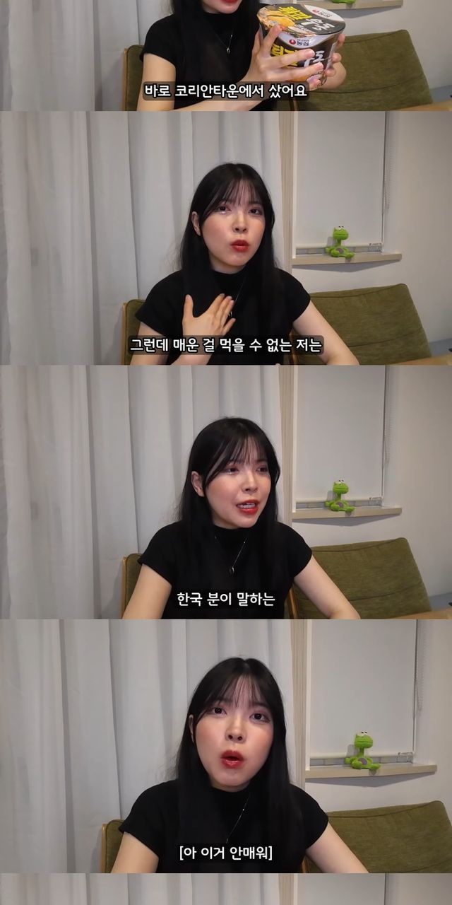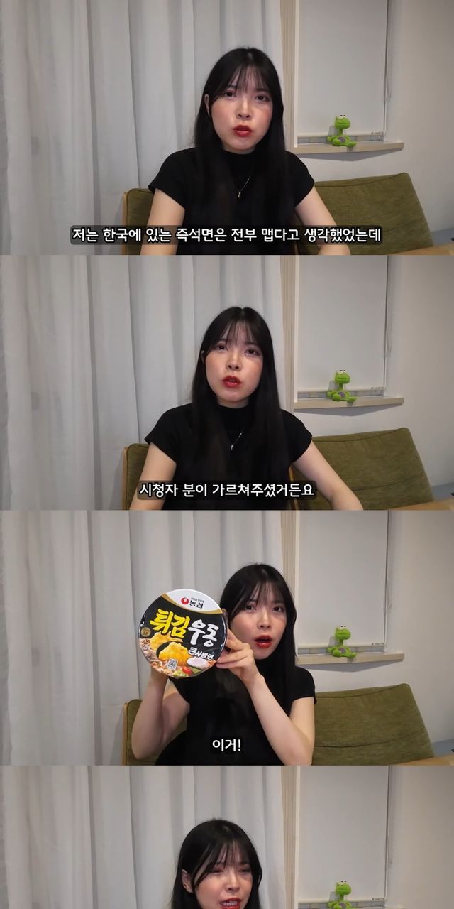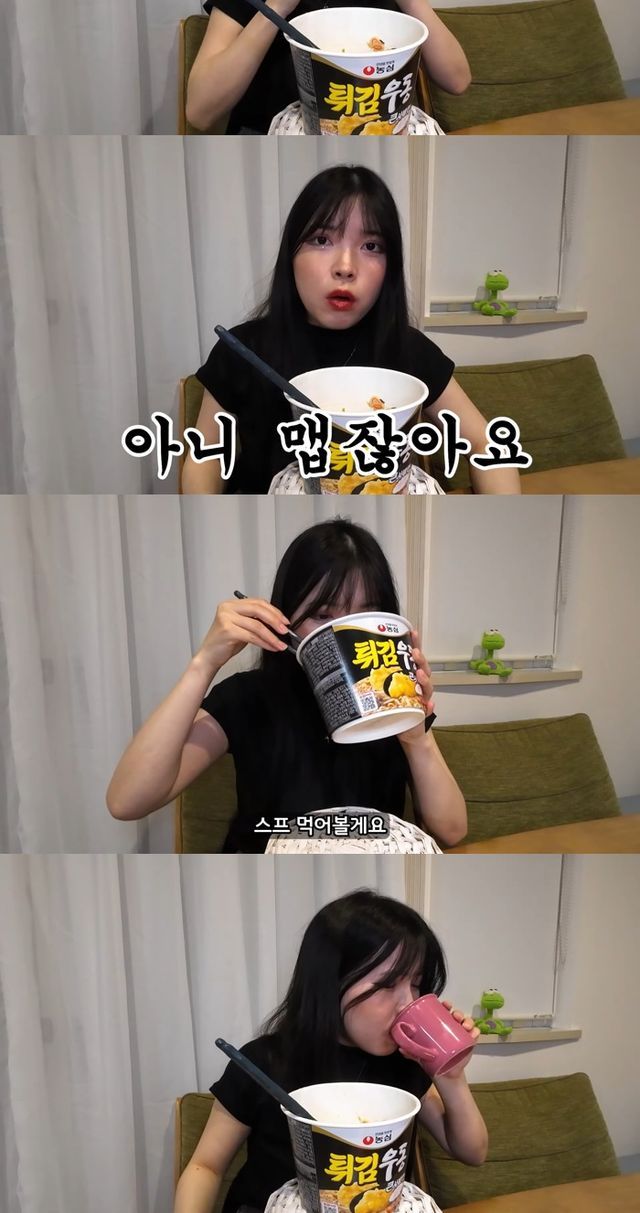 안 맵다는 튀김우동 컵라면 먹어보는 일본사람