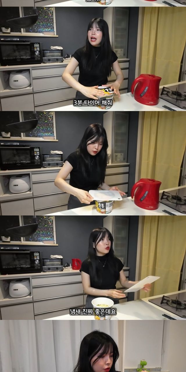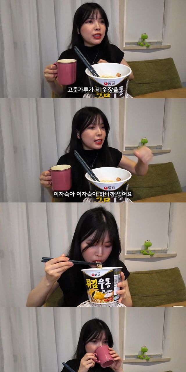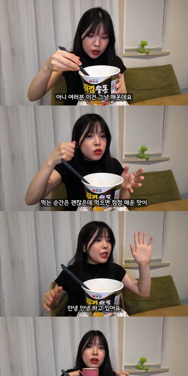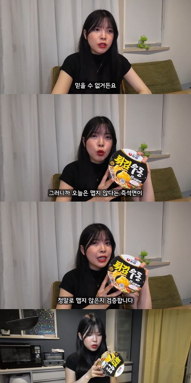 안 맵다는 튀김우동 컵라면 먹어보는 일본사람