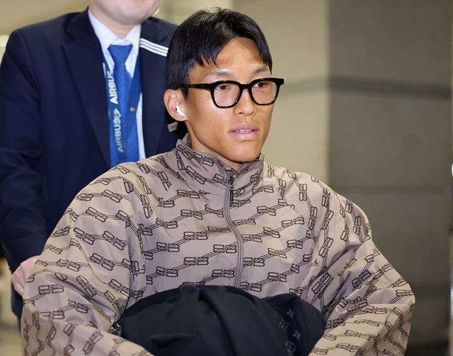 지난해 십자인대가 파열되는 부상으로 2023 아시아축구연맹(AFC) 아시안컵 대회 중 대표팀에서 하차한 뒤 귀국한 김승규 / 뉴스1