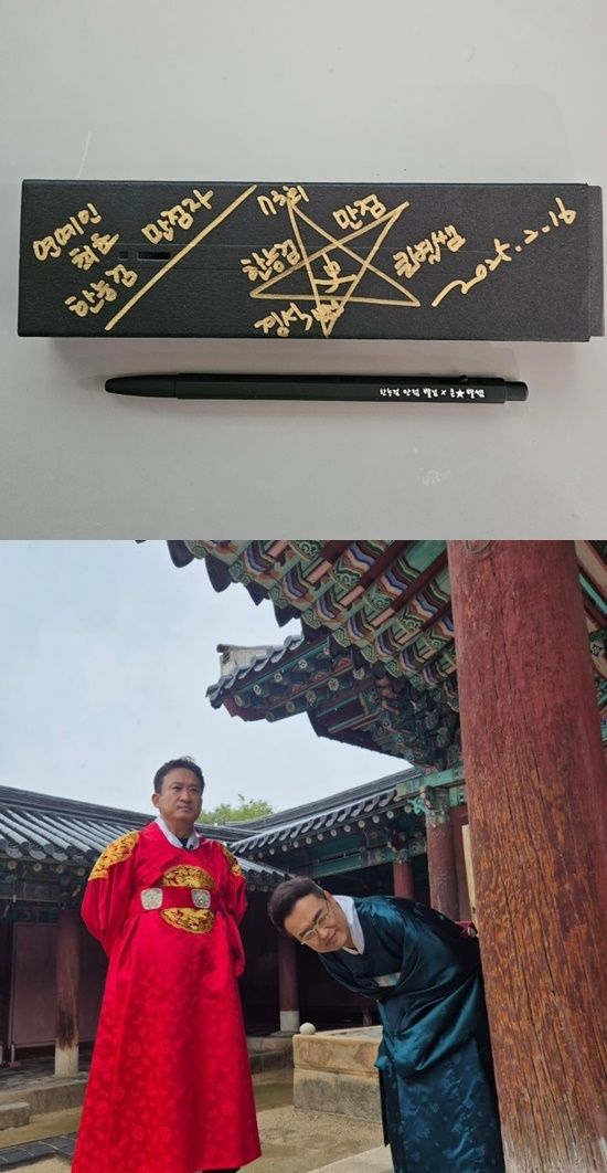 최태성은 만년필 케이스에 "연예인 최초 한능검 만점자"라고 적으며 서경석을 향한 축하를 보냈다.