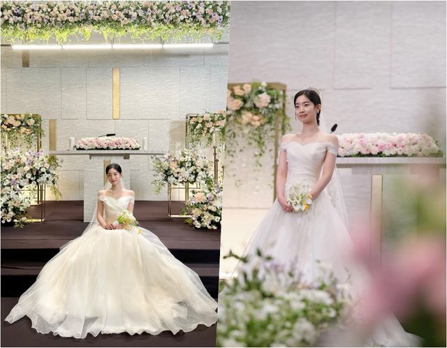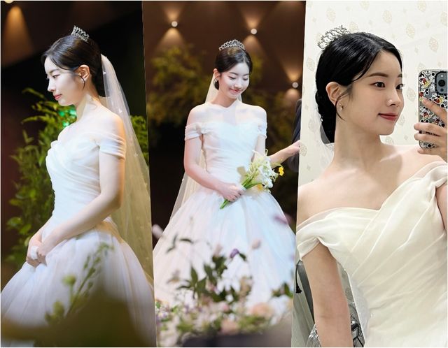 사진 속 다현은 순백의 웨딩 드레스를 입고 단아한 미모를 자랑하는 모습이다. 특히 드레스 만큼이나 눈부신 우윳빛 피부가 시선을 사로잡는다.