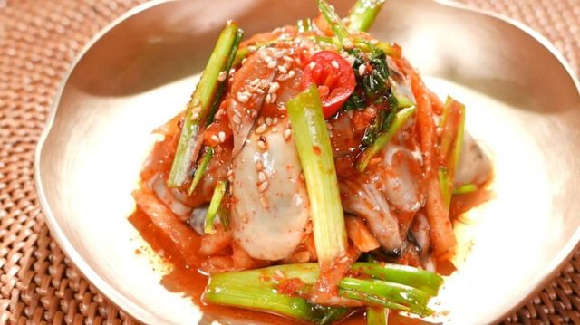 살짝 데친 굴과 오이, 미나리를 넣고 조물조물 무치면 완성된다. 한 입 먹으면 새콤한 양념이 입맛을 확 깨우고, 굴의 감칠맛이 진하게 퍼진다. 상추나 김 위에 올려 먹으면 더욱 조화로운 맛을 즐길 수 있다.