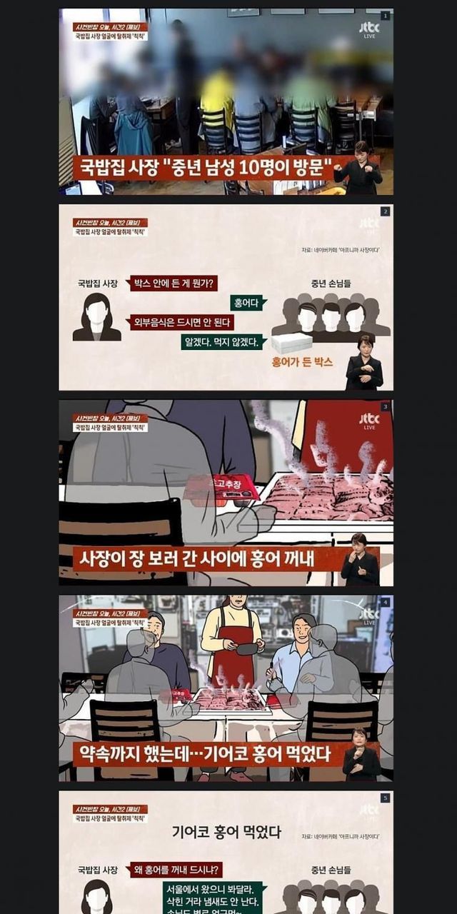 남의 식당에 홍어 사와서 먹은 중년 손님들