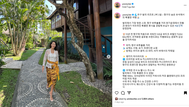 이윤진은 지난 3일 자신의 인스타그램을 통해 '투구 호텔 발리' 투숙 이벤트 '윤진팩'을 소개했다.