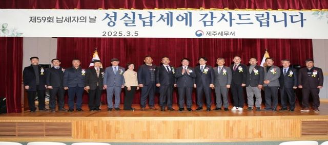 [한라일보] 제주세무서(서장 박인호)는 5일 정부제주지방합동청사 1층 대강당에서 제59회 납세자의 날 행사를 실시했다. 이날 유한회사 제주공항렌트카 장성욱 대표이사, 명예민원봉사실장에 한라세무회계 양연재 대표가 명예세무서장에 위촉됐으며, 모범납세자(성실납세자) 14명, 세정협조자 2명, 유공공무원 2명에게 표창장 등이 수여됐다. 세무서 누리집에는 모범납세자 명단이 게시됐다.