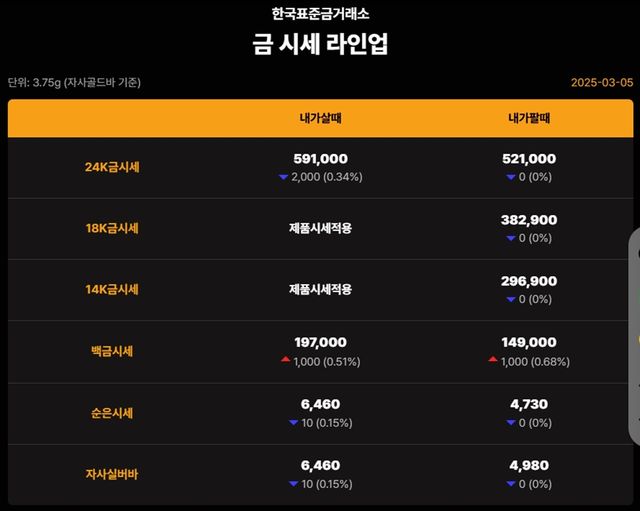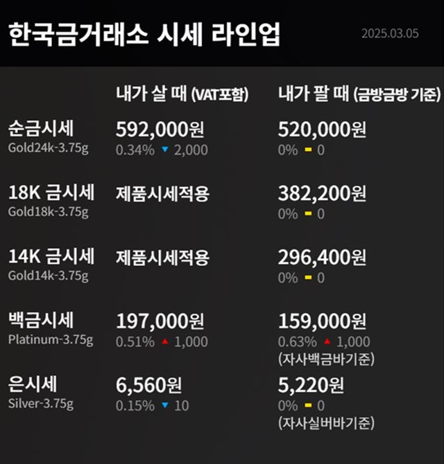 순금(24K) : 매입가 59만 2000원 / 매도가 52만 원
