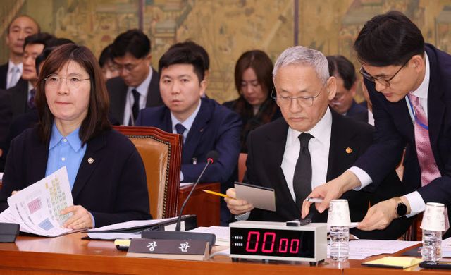 지난해 각종 논란과 비판 속에서도 최근 4선에 성공한 정몽규 대한축구협회장에 대한 조처를 묻는 말도 나왔다. 유인촌 장관은 “이미 감사에 따른 조치가 내려졌으나 축구협회에서 집행 정지 소송을 하면서 중단됐다”며 “법원 판결에 따라 정리해야 하지 않을까 한다”고 답했다.