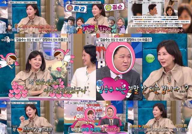 이때 김구라가 “김승수는 정말 안 되는 겁니까?”라며 회심의 질문을 던지자, 장도연도 미련 가득한 표정으로 양정아의 마음을 궁금해 한다. MC들의 간절한 모습에 입을 뗀 양정아. 과연 어떤 대답을 했을지 본 방송을 기대케 한다.