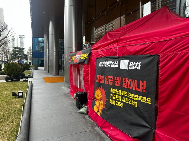 금융노조 기업은행지부(이하 기업은행 노조)는 5일 오전 서울 중구 기업은행 본점 로비에서 '24·25 기업은행 임단투 본점 아침 총력대회'를 열었다. 이날 아침 집회에는 130여명의 노조원이 참여했다. 지난해 12월 27일 창립 이래 단독 총파업을 시작으로 투쟁을 이어가고 있는 기업은행 노조의 집단행동은 벌써 세 달째 지속되고 있다. 기업은행 노조가 집단행동에 나선 이유는 처우문제 때문이다. 이들은 시간 외 근무 보상휴가 현금 미지급과 시중은행 대비 30% 정도 떨어지는 임금 격차를 각각 체불임금과 차별임금으로 규정하고 있다.
