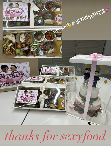 5일 ‘핑계고’ SNS 공식 계정 ‘뜬뜬’에는 “프롬 밀키바닐라엔젤”이라는 글과 함께 이준혁이 보낸 도시락과 케이크 사진이 게시됐다.