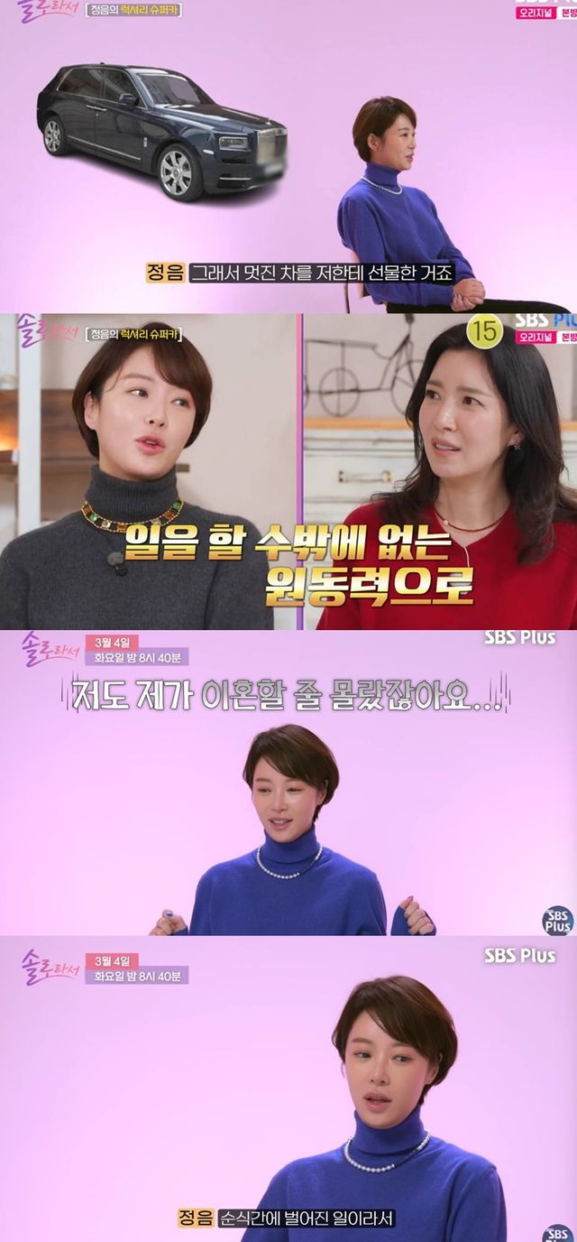 이에 대해 황정음은 "차는 제가 2020년에 첫 번째 이혼을 하려고 했을 때. 목욕탕 가서 제 얼굴을 보니까 너무 불쌍한 거다. 이혼을 결정했고 저한테 주는 선물이 필요했던 것 같다"라며 슈퍼카를 구매한 이유를 공개했다.