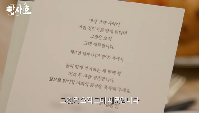 이날 김종민은 효연에게 청첩장을 건넸다. 효연은 “받으니까 기분 좋다. 갈 거다 당연히”라며 “영상 편지를 봤다. 오빠가 축전 따는 것처럼 ‘네가 와서 함께해줬으면 좋겠어’하는데 마음이 전해졌다”고 흔쾌히 초대를 수락했다.