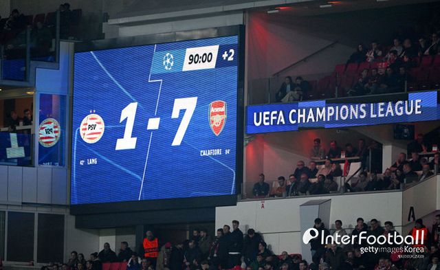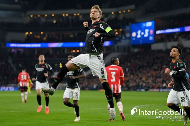 아스널은 5일 오전 5시(한국시간) 네덜란드 아인트호벤의 필립스 스타디움에서 열린 2024-25 유럽축구연맹(UEFA) 챔피언스리그(UCL) 16강 1차전 PSV 아인트호벤을 7-1로 대파했다. 이로써 아스널은 8강 진출 가능성을 크게 높였다.