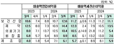 3/4분기 보건산업 제조업체의 매출액영업이익률은 12.6%로 전년 동기(10.6%) 대비 2.0%p 개선됐다.