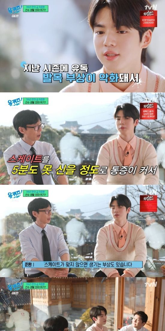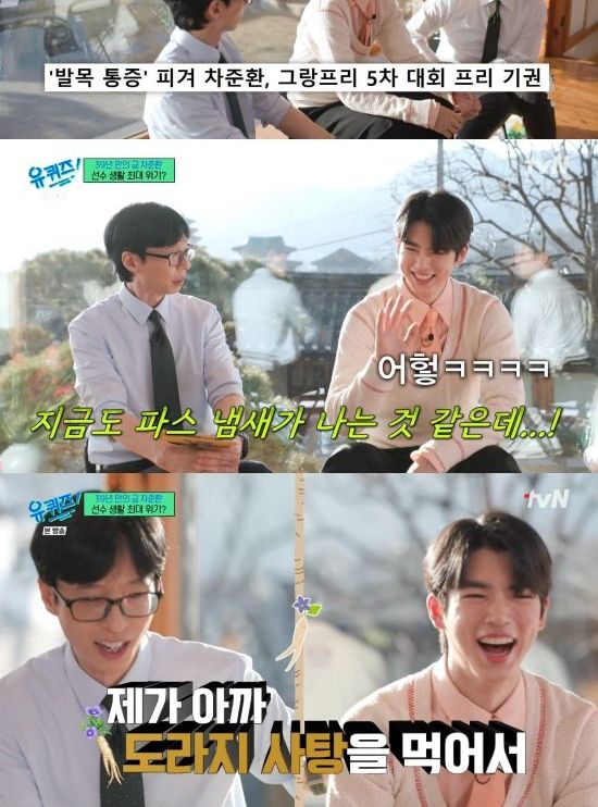 5일 방송된 tvN '유 퀴즈 온 더 블럭'(이하 '유퀴즈')에서는 '꿈은 이루어진다' 특집으로 꾸며진 가운데 차준환 선수가 발목 부상에 대해 언급한 장면이 전파를 탔다.