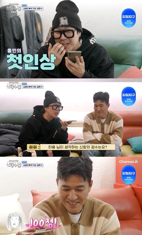5일 방송된 채널A '요즘 남자 라이프-신랑수업'(이하 '신랑수업')에서는 김종민이 절친 하하를 신랑 플래너로 임명, 예비신부 히융(애칭)과 정식으로 소개했다.