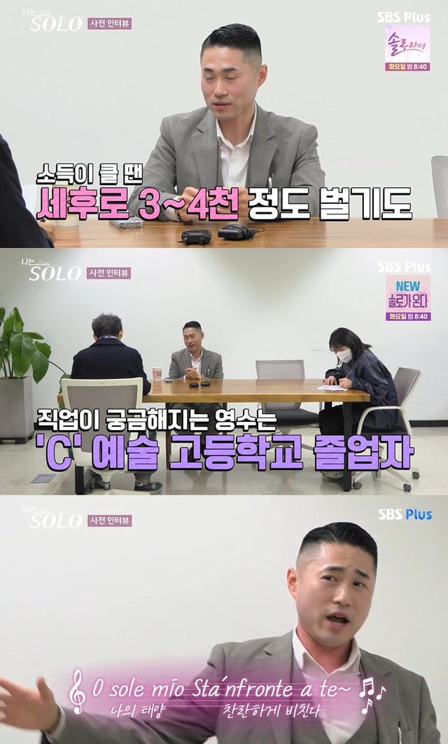 이날 영수는 인터뷰에서 "세후로 3,000~4,000정도 번다. 연봉이 4억에서 5억 정도 된다"며 남다른 재력을 자랑했다. 이어 예술고등학교 출신이라는 그는 갑자기 일어나 성악을 부르며 남다른 존재감을 과시했다.