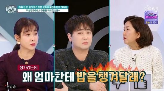 5일 방송된 TV조선 '퍼펙트 라이프'에는 트로트 가수 박현빈과 노래 강사인 어머니 정성을 모자가 함께 출연했다.