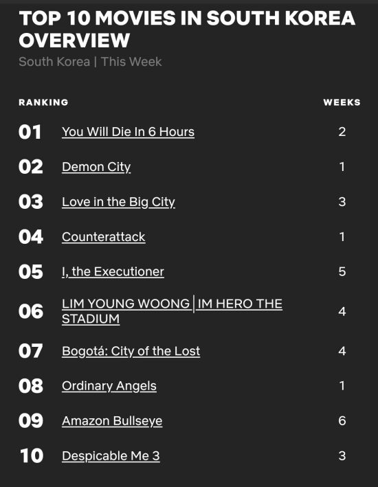 이에 해당 영화는 넷플릭스 공개 직후 많은 관심을 받았고, 이에 공개 직후 대한민국 영화 주간 TOP6에 올랐다.