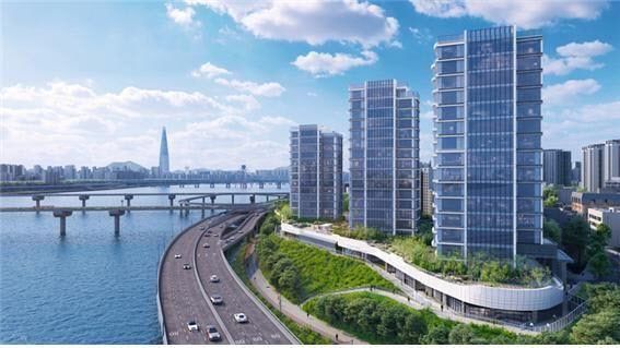 아울러 높은 천장고와 커튼월 설계를 적용해 한강을 한눈에 담을 수 있는 한강 파노라마뷰를 완성했다. 한강 산책로가 단지에서 바로 연결된 것도 특징이다.