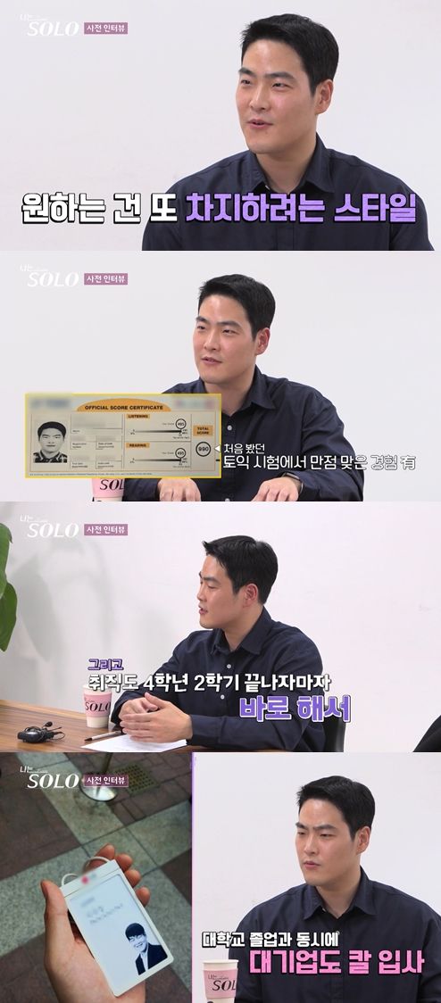 상철은 사전 인터뷰를 통해 "저는 원하는 건 차지하려고 하는 스타일이다. 처음 봤던 토익에서 만점을 받았다. 취직도 대학 4학년 2학기 끝나자마자 바로 대기업에 칼 입사했다"라 밝혔다.