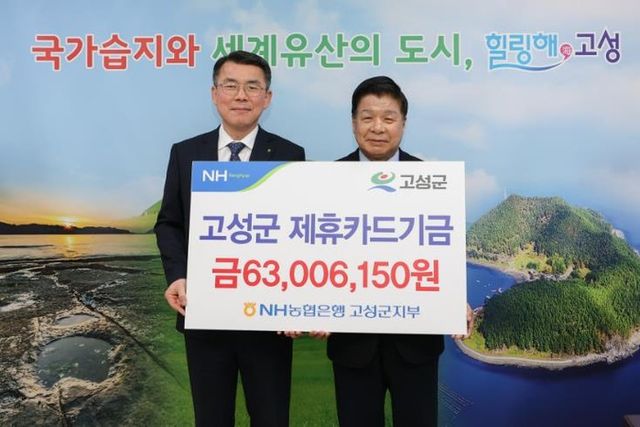 NH농협은행 고성군지부에서 고성군에 전달한 제휴카드 적립기금은 6,300만 원이며, 고성군과 NH농협은행 고성군지부 간 협약에 따라, 지난해 1년간 고성군청에서 사용한 법인⋅보조금⋅공무원복지 카드 사용금액의 0.1~1.0%를 적립한 것이다.