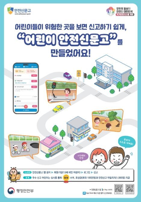 이에, 어린이가 주변 안전 위험 요소를 쉽고 편리하게 신고할 수 있도록 어린이용 안전신문고를 도입한다.