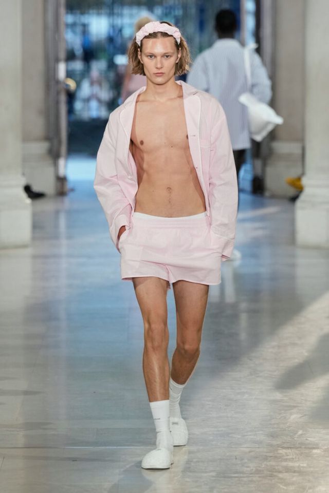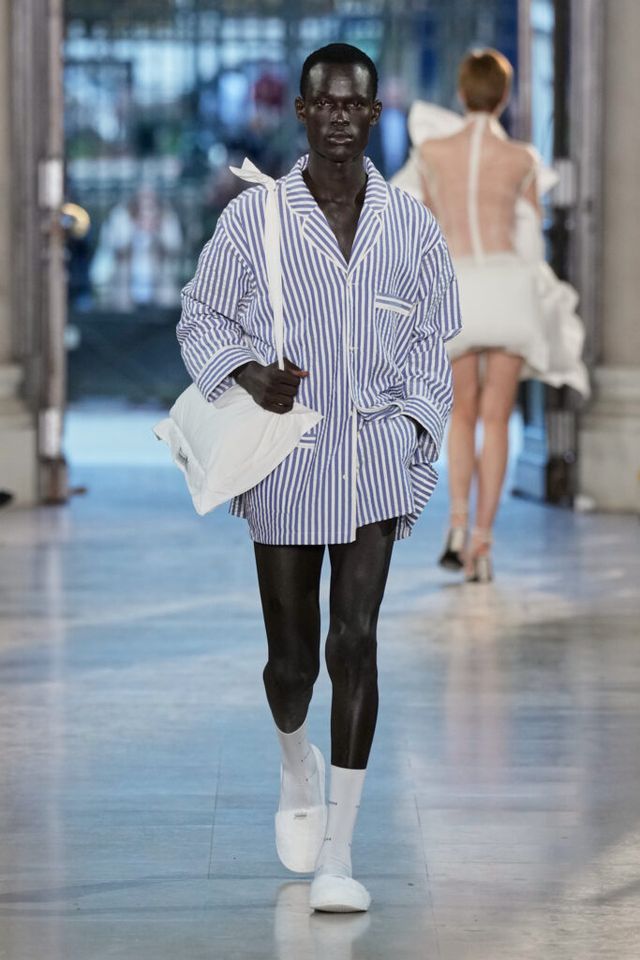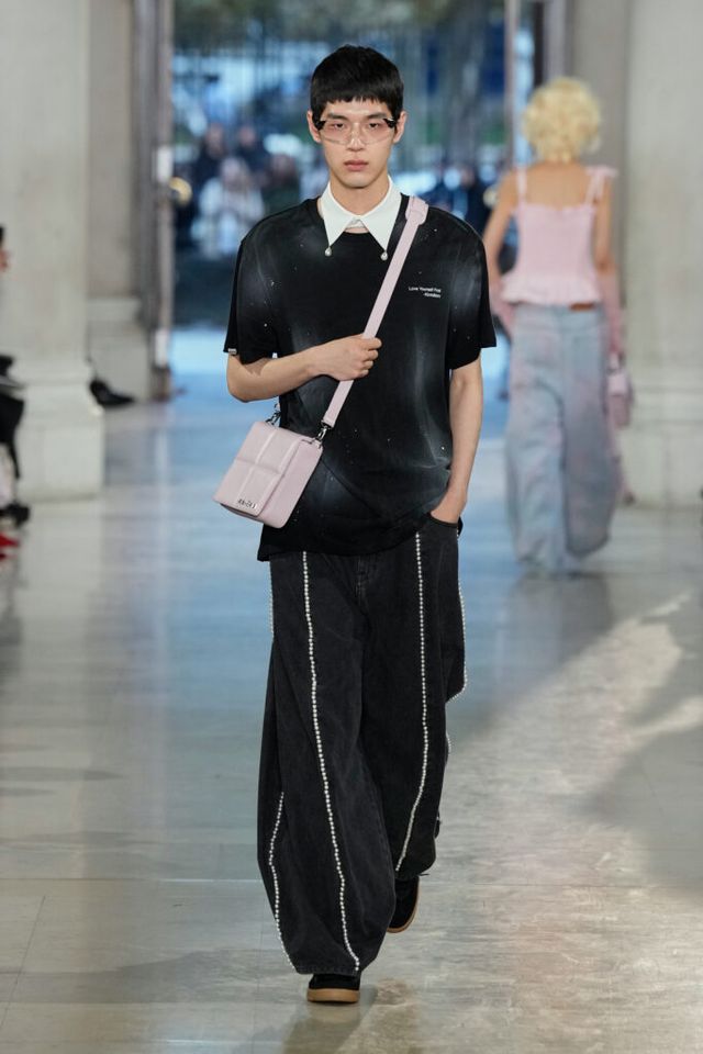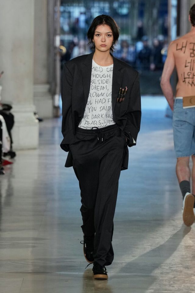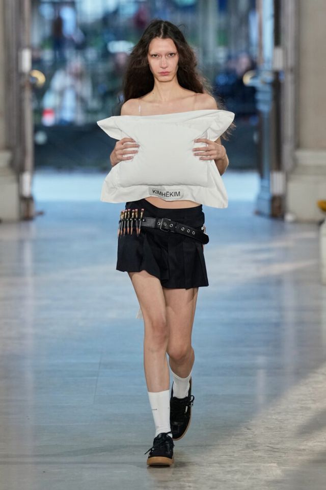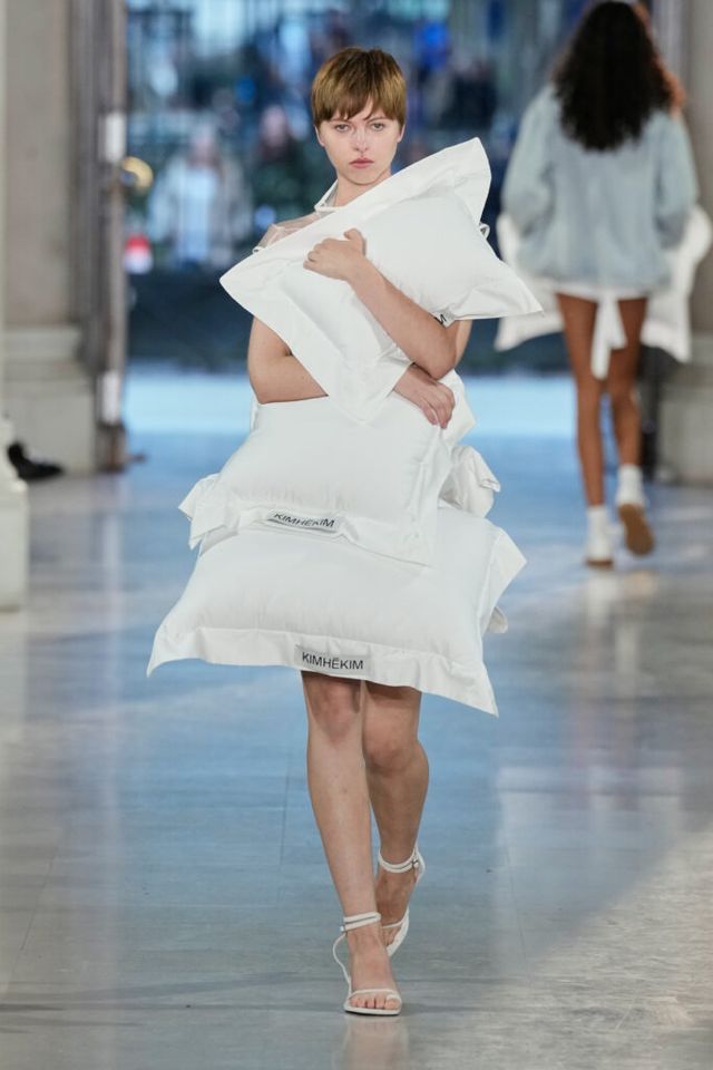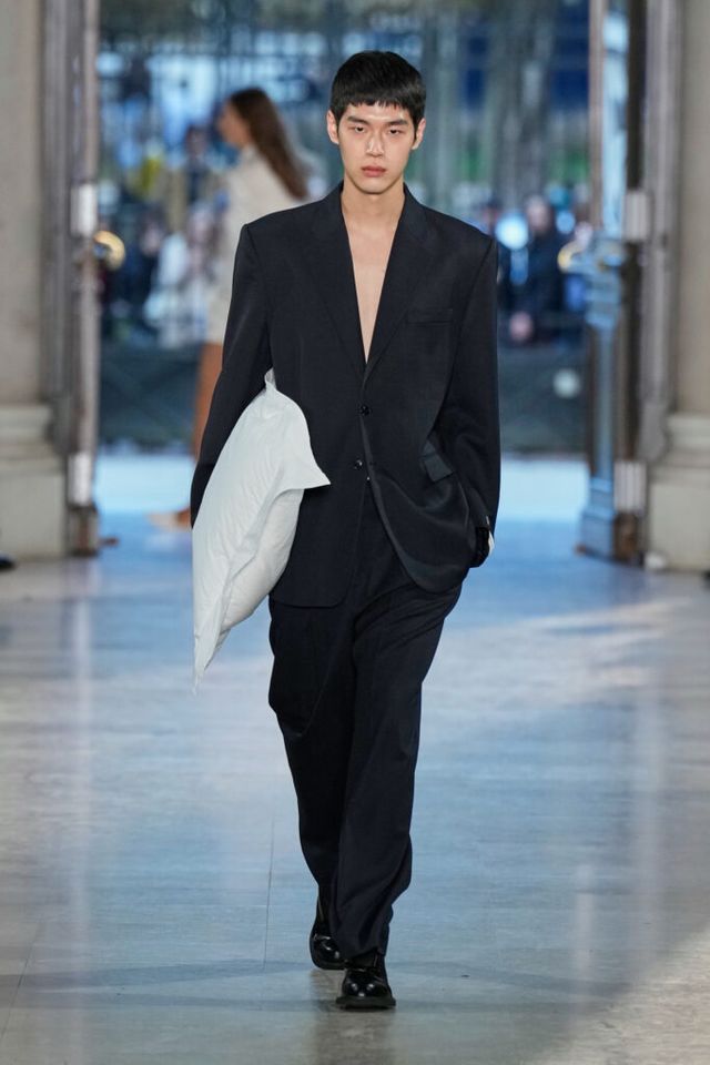 NOTE 꿈을 꾸고, 꿈을 이루고자 하는 사람(dreamer)에 대한 경의. 베개 톱부터 아늑한 이불 드레스, 낙낙한 파자마, 잠들기 전에 쓴 일기 같은 캘리그래피 수트와 연필 클립 장식까지. 침실에서 으레 볼 수 있는 익숙한 것들을 미학적으로 재구성한 후 김해김이란 세계로 대중을 초대했다. 모델들이 한 명씩 차례로 잠드는 퍼포먼스를 펼친 피날레도 인상 깊었던 순간.